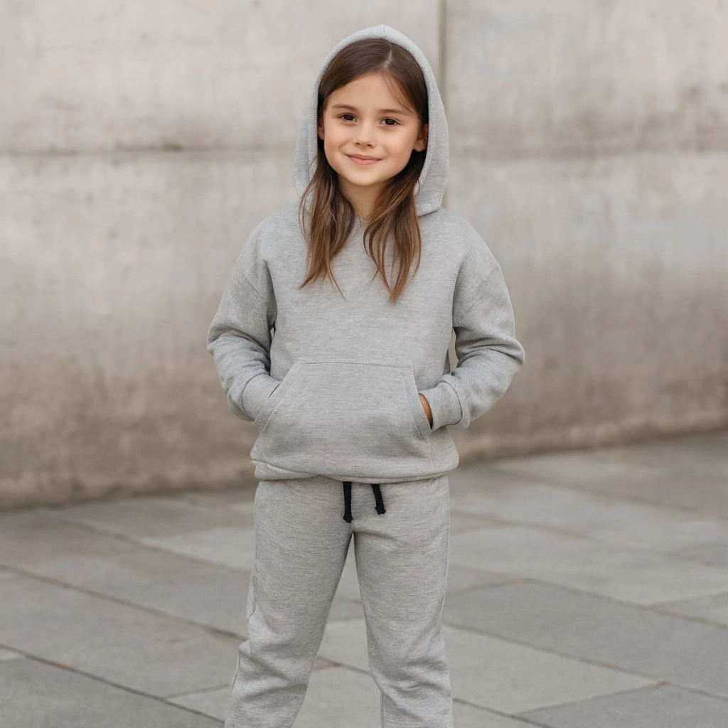 Feito para brincar, aprender e descansar com o mesmo conforto. Este conjunto une blusão com capuz e bolso canguru + calça com cós elástico e cordão ajustável, entregando mobilidade, aconchego e um visual moderno para dias frios e meia-estação.